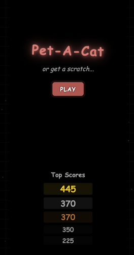 Pet-A-Cat (or get a scratch…) is a fast-paced, whack-a-mole style game where your goal is simple - pet as many cats as you can! But be careful - some cats aren’t meant to be touched.